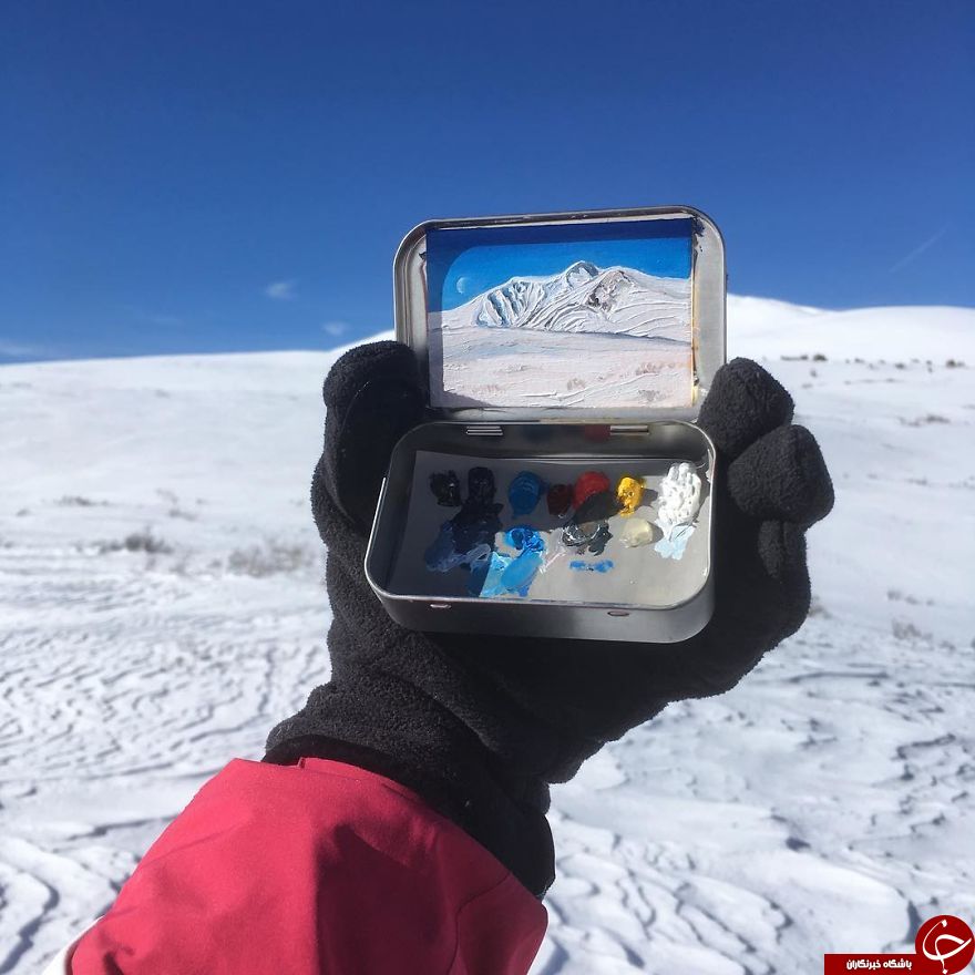این هنرمند بخشی از فضای طبیعت را در کادر نقاشی خود حفظ و سپس با استفاده از هنر عکاسی عکس های بی نظیری را خلق کرده است.