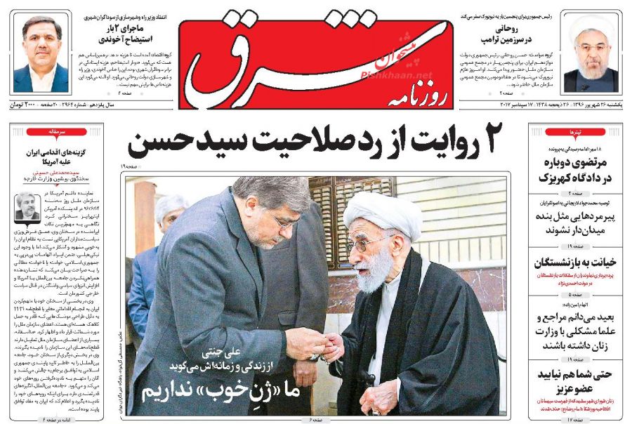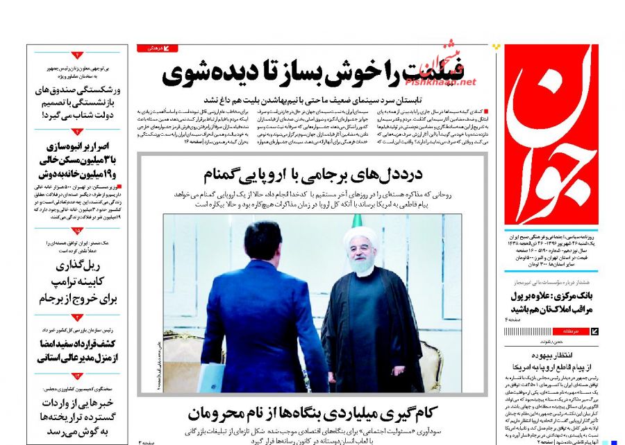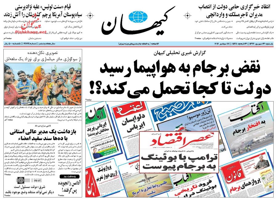 به گزارش شبنم همدان به نقل از باشگاه خبرنگاران : تصاویر صفحه نخست روزنامههای سیاسی کشور که صبح امروز در پیشخوان مطبوعات عرضه میشود، به شرح زیر است: