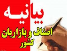 ما اصناف و بازرگانان ایران ضمن محکومیت شدید این حرکت سخیف و تحقیرآمیز، برائت خود را از شرکت در این مراسم به اصطلاح جشن، اعلام میداریم و این کار را توطئه ای برای بدنام کردن ایران و ایرانی به ویژه تجار و بازرگانان قلمداد میکنیم.