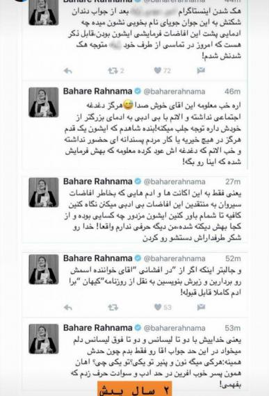 به گزارش شبنم ها،حدود دو سال پیش بهاره رهنما در فضای مجازی (اینستاگرام) اقدام به بیان مطالبی کذب و همچنین بیان الفاظ رکیک از قبیل (ایشان مزدور چه کسانی بوده- بی ادب-ایشان برای گرفتن مجوز دولا و راست شده و...) علیه سیروان خسروی انجام داد که بعد از شکایت سیروان خسروی از بهاره رهنما، حکم دادگاه به نفع سیروانخسروی تمام شد و بهاره رهنما به تحمل ۵۰ ضربه شلاق تعزیزی محکوم شد.