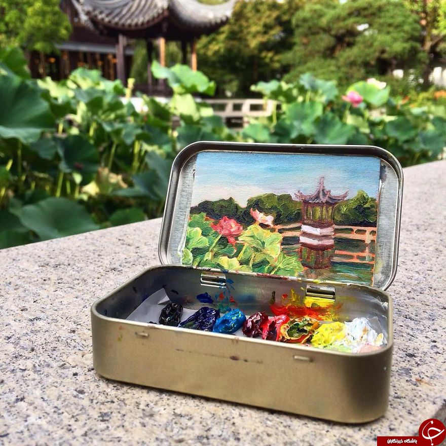 این هنرمند بخشی از فضای طبیعت را در کادر نقاشی خود حفظ و سپس با استفاده از هنر عکاسی عکس های بی نظیری را خلق کرده است.