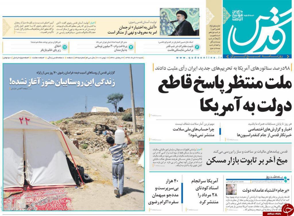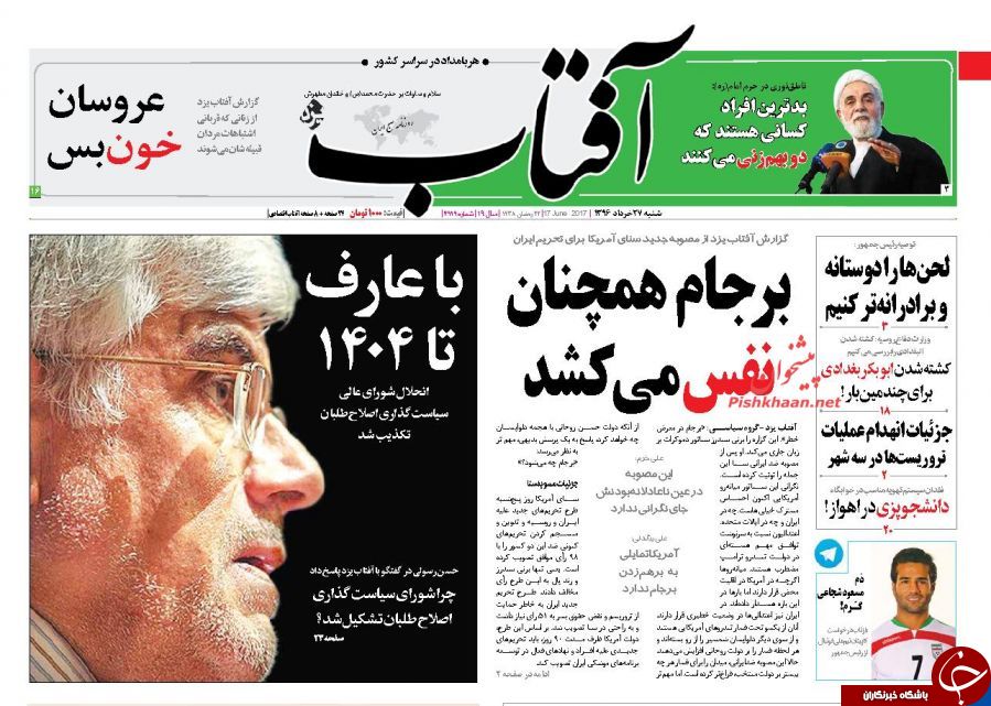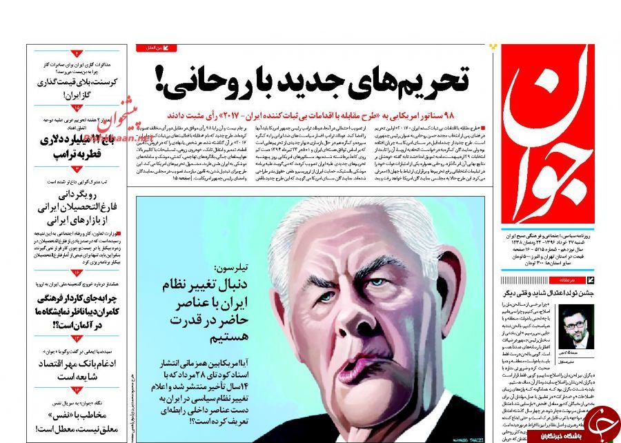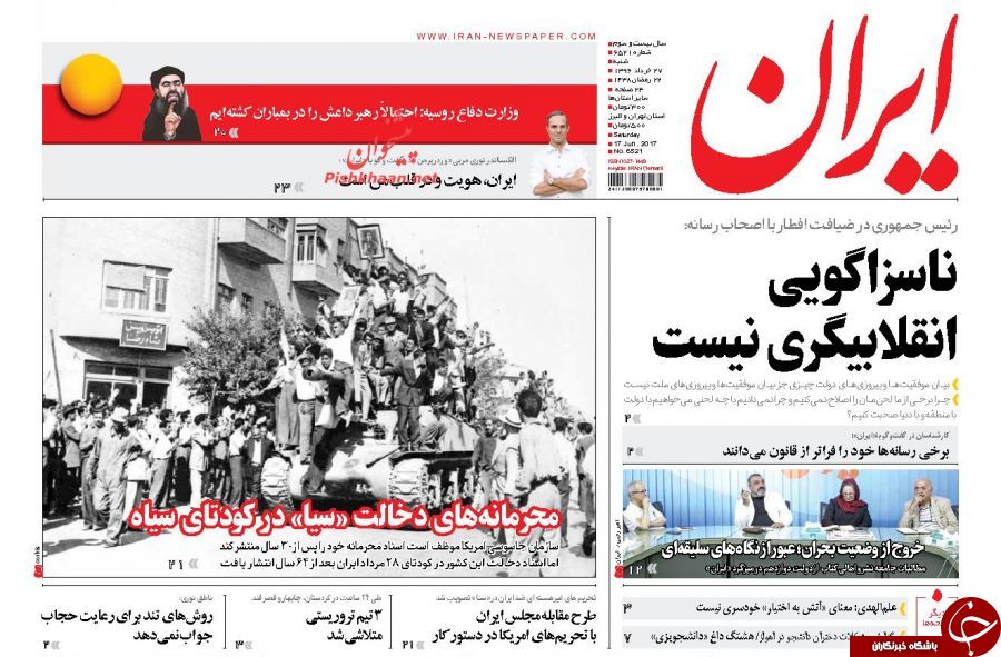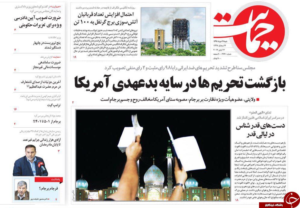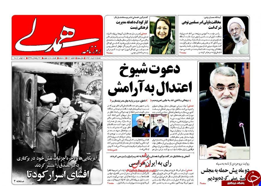 به گزارش شبنم همدان به نقل از باشگاه خبرنگاران جوان : تصاویر صفحه نخست برخی روزنامههای سیاسی کشور که صبح امروز در پیشخوان مطبوعات عرضه میشود، به قرار ذیل است: