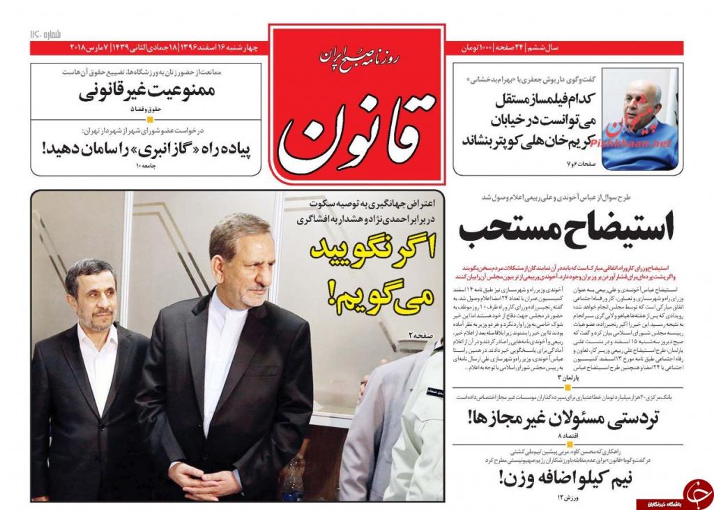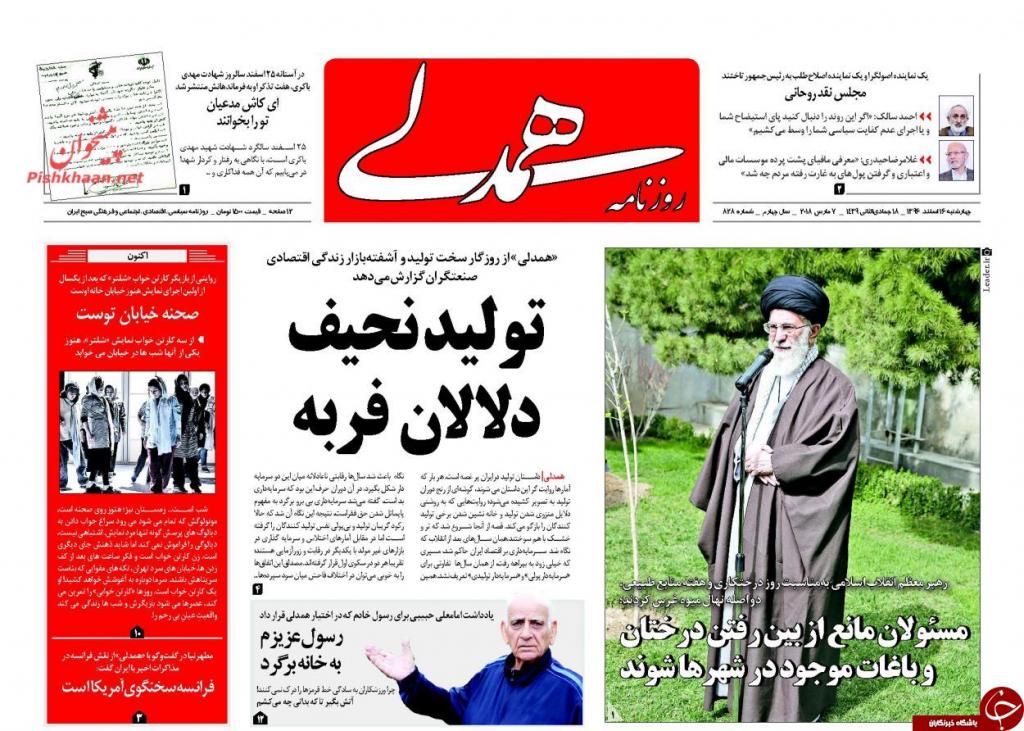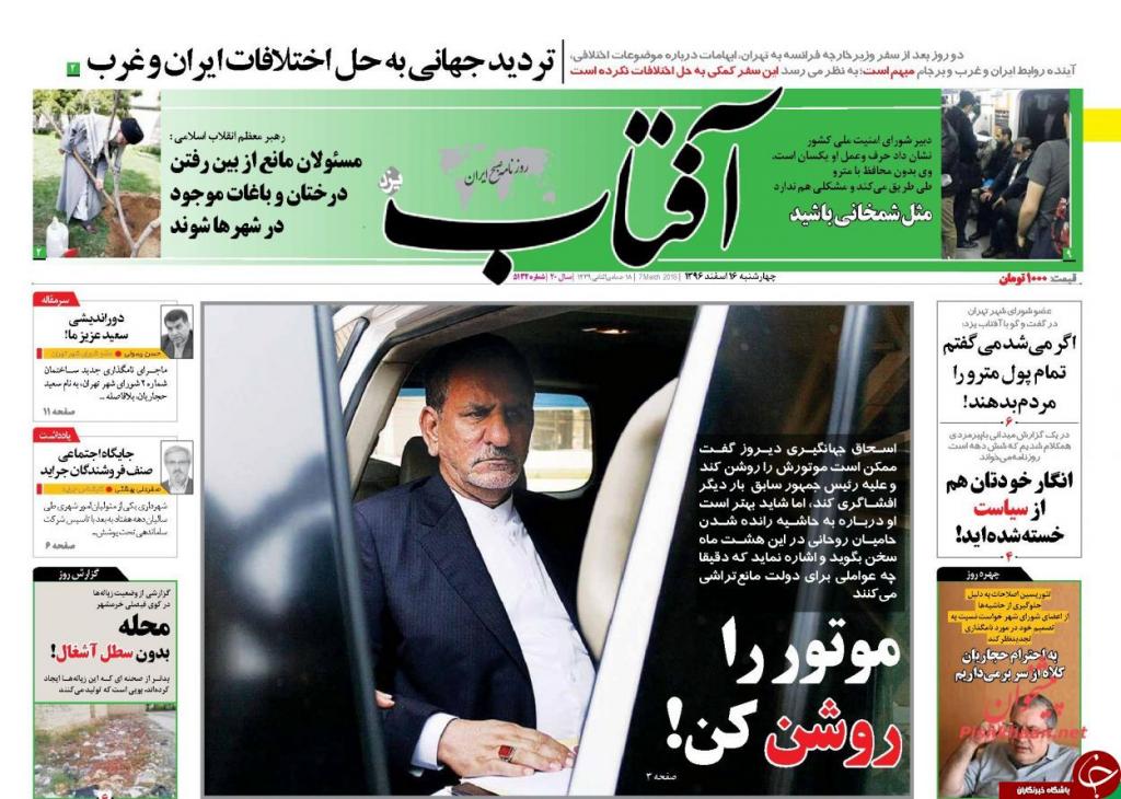 به گزارش شبنم همدان به نقل از باشگاه خبرنگاران جوان : تصاویر صفحه نخست روزنامههای سیاسی کشور که صبح امروز (چهارشنبه، 16 اسفندماه) در پیشخوان مطبوعات عرضه میشود، به شرح زیر است: