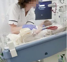 این کودک پس از اینکه به وسیله اقوام خود بوسیده شده بود به بیماری سرماخوردگی بسیار شدید مبتلا شد، درنهایت عفونت شدید قفسه سینه سبب بستری او دربخش مراقبتهای ویژه نوزدان شد.